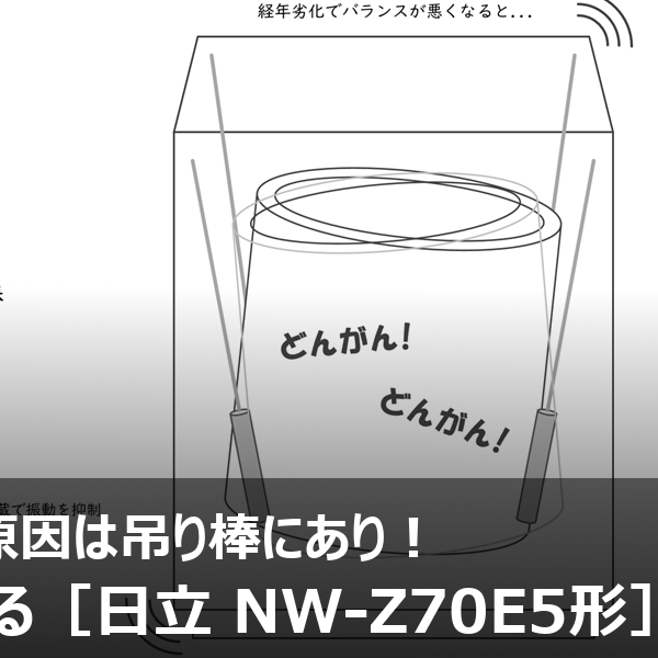 洗濯機の脱水時に大きな振動や音がするようになったので、吊り棒の交換で対応しました。2018年製の全自動洗濯機[日立 NW-Z70E5形]です。