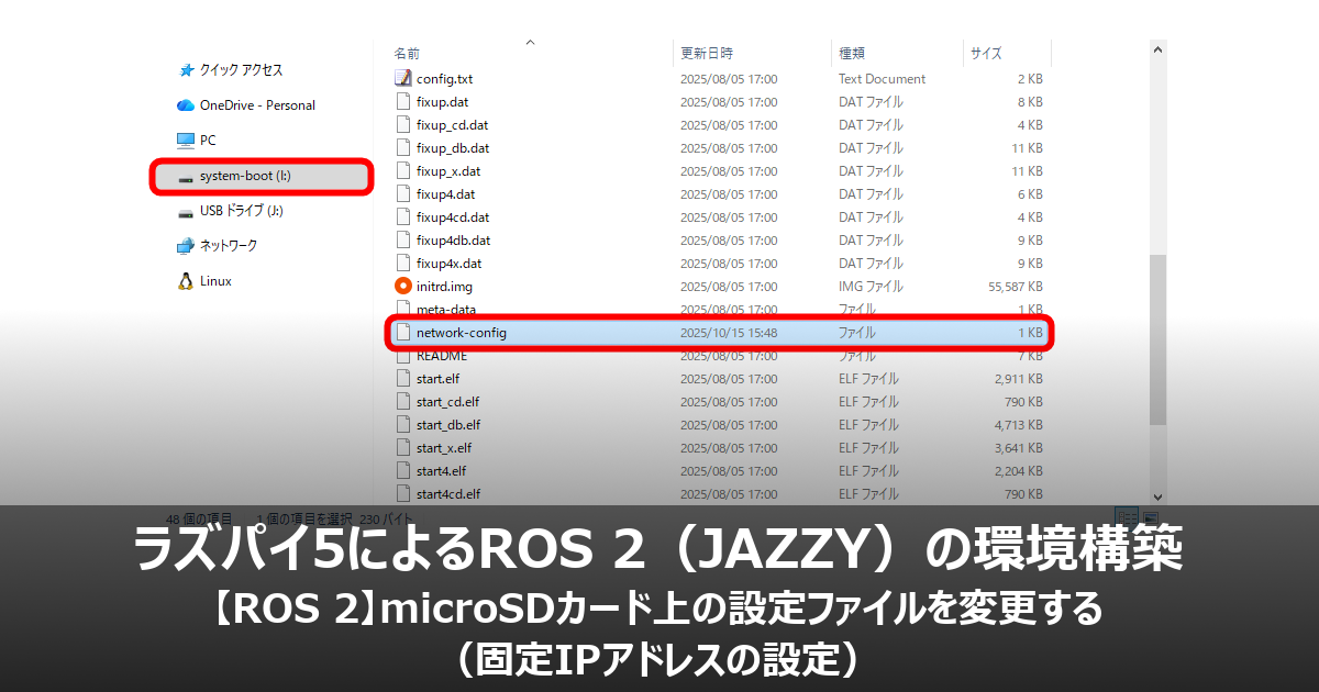 【ROS 2】microSDカード上の設定ファイルを変更する(固定IPアドレスの設定)