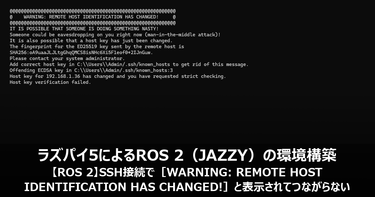【ROS 2】SSH接続で[WARNING: REMOTE HOST IDENTIFICATION HAS CHANGED!]と表示されてつながらない