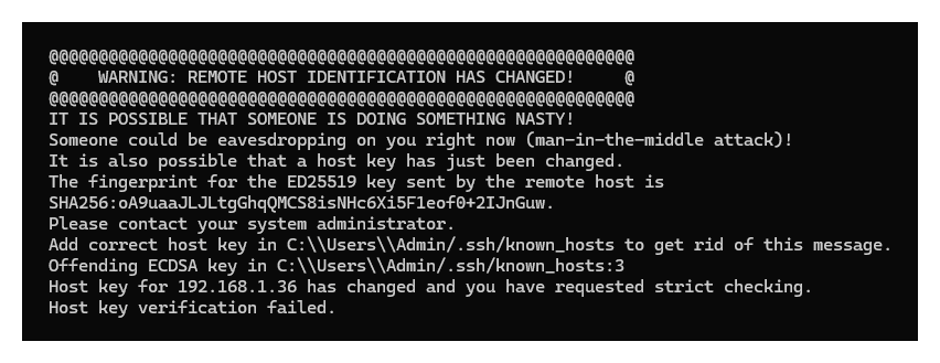 Windows 11のターミナル(Windows Terminal)からRaspberry Pi 5にSSH接続しようとしたとき、警告メッセージ[WARNING: REMOTE HOST IDENTIFICATION HAS CHANGED!]が表示され、接続できないことがあります。目立つように[@]で囲まれたこの警告メッセージが目に飛び込んでくると驚きますよね。