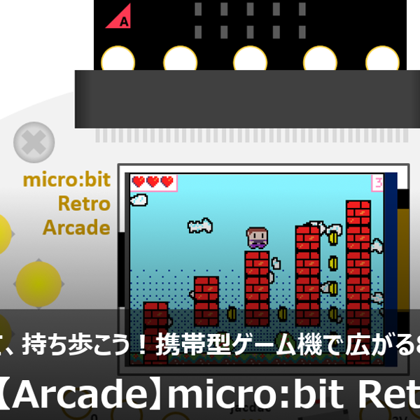 8ビット風ゲームの開発環境[Microsoft MakeCode Arcade]と、micro:bitを携帯型ゲーム機へと変身させる拡張ボード[micro:bit Retro Arcade]を紹介します。
