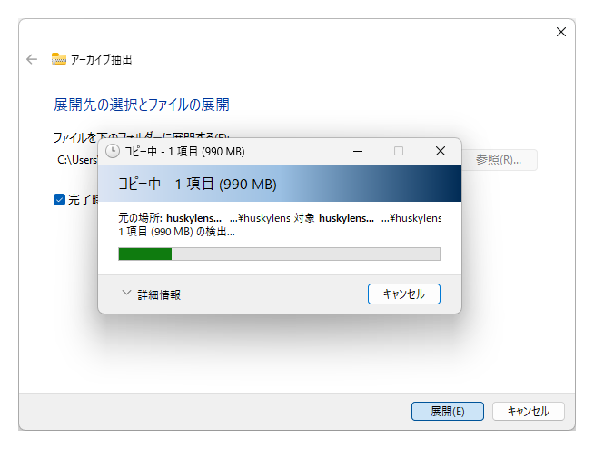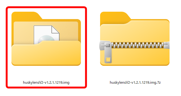展開が完了したら、展開先で指定した場所に新しいフォルダーが作成されていることを確認します。この例では[huskylensV2-v1.2.1.1219.img]となります。