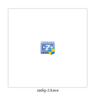 Zadigのウェブサイト(https://zadig.akeo.ie/)にアクセスして、Zadigアプリケーションをダウンロードします。この例では[zadig-2.9.exe]というファイルをダウンロードしました。