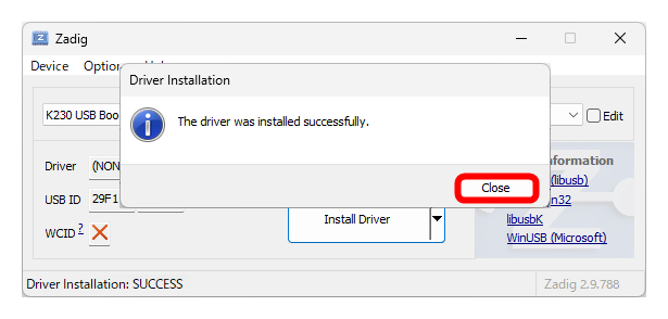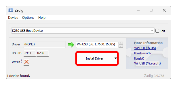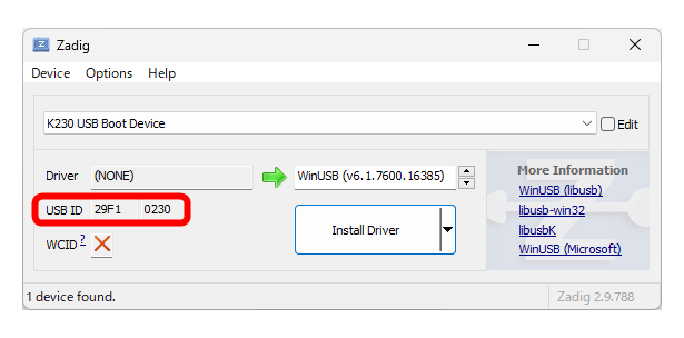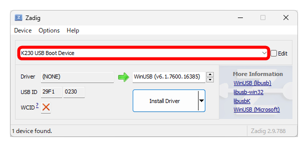K230 USB Boot Device用デバイスドライバーをインストールする